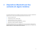 3 Dispositivos Bluetooth sem fios (somente em alguns modelos) Um dispositivo Bluetooth sem fios possibilita comunicações sem fios de curto alcance, substituindo as ligações físicas com cabos que normalmente ligam dispositivos electrónicos como ● Pontos de acesso de rede. ● Computadores (de mesa, notebook, PDA). ● Telefones (telemóveis, sem fios, smart phone). ● Dispositivos de geração de imagens (impressoras, câmaras). ● Dispositivos de áudio (auscultadores, altifalantes).
