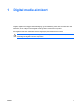 1 Digital medie-slot-kort Valgfrie, digitale kort muliggør sikker datalagring og nem datadeling. Disse kort anvendes ofte med kameraer, der er udstyret med et digitalt medie og PDA'er samt andre computere. Den digitale-medie-slot understøtter Secure Digital (SD) hukommelseskort formater. FORSIGTIG! Undgå at indsætte nogen form for adapter i hukommelseslæseren, da det kan beskadige det digitale kort eller computeren.