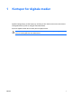 1 Kortspor for digitale medier Digitalkort (tilleggsutstyr) gir sikker lagring og utveksling av data. Disse kortene brukes ofte sammen med digitalkameraer og PDA-er i tillegg til andre datamaskiner. Sporet for digitalkort støtter SD-minnekort (Secure Digital) formater. FORSIKTIG Pass på at du ikke setter inn noen annen form for kort i spor for digitale medier. Det kan skade digitalkortet eller datamaskinen.