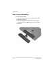 First-time setup Step 1: Insert the battery To insert a primary battery: 1. Turn the computer upside down on a flat surface, with the battery bay toward you. 2. Slide the battery 1 into the battery bay until it is seated. The battery release latch 2 automatically locks the battery into place.