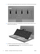 15. Sluit de externe voedingsbron en de externe apparatuur weer aan. 16. Zet de computer aan. Geheugenmodule upgraden in het slot voor de primaire geheugenmodule upgraden U kunt als volgt een geheugenmodule in het slot voor de primaire geheugenmodule upgraden: NLWW 1. Sla uw werk op. 2. Schakel de computer uit. (Als u niet weet of de computer is uitgeschakeld of in de hibernationstand staat, zet u de computer aan door op de aan/uit-knop te drukken.