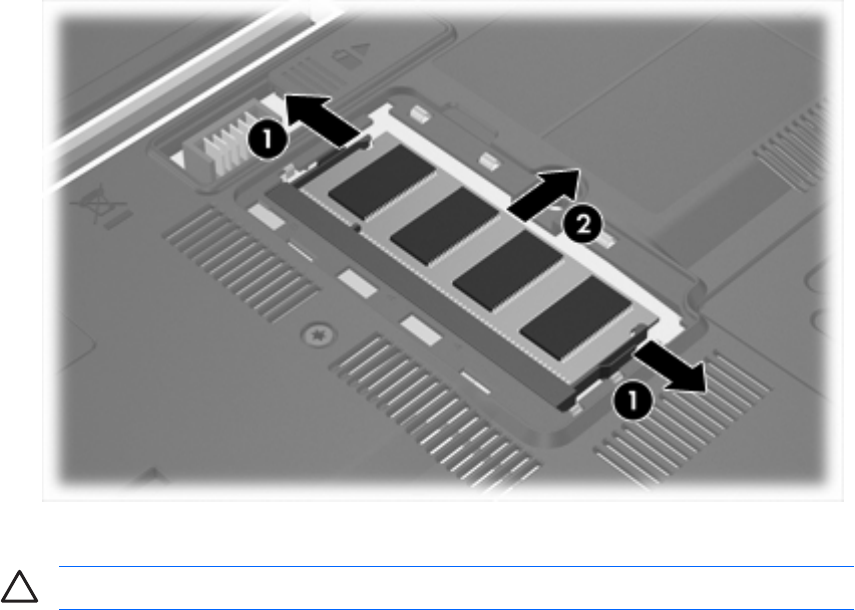 b. Tartu muistimoduuliin (2) sen reunasta ja vedä moduuli varovasti ulos muistimoduulipaikasta.