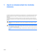 2 Conséquences de l'ajout de mémoire Lorsque vous augmentez la mémoire RAM, le système d'exploitation augmente l'espace du disque dur réservé au fichier hibernation. Si vous rencontrez des problèmes avec le mode hibernation une fois la mémoire augmentée, assurezvous que le disque dur dispose de suffisamment d'espace libre pour un fichier hibernation plus volumineux.