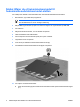 b. Tag fat om kanten på hukommelsesmodulet (2), og træk forsigtigt modulet ud af hukommelsesmodulslotten. (Med henblik på at beskytte et fjernet hukommelsesmodul bør det opbevares i en pose eller beholder, der er sikret mod statisk elektricitet.) 13. For at indsætte et hukommelsesmodul: FORSIGTIG! Med henblik på at undgå beskadigelse af hukommelsesmodulet må du ikke bukke det. DAWW a. Placer hukommelsesmodulet, så kanten med indhakket (1) passer med tappen i hukommelsesmodulslotten. b.