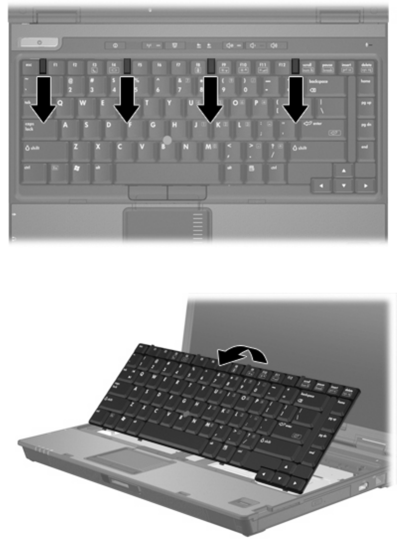 11. Til voorzichtig de bovenste rand van het toetsenbord op en kantel het toetsenbord totdat het op de