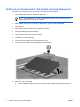 Sette inn eller bytte ut minnemoduler Datamaskinen har to minnemodulbrønner. Den primære minnemodulbrønnen er plassert under tastaturet. Den ekstra minnemodulbrønnen er plassert på undersiden av datamaskinen. Minnekapasiteten til datamaskinen kan oppgraderes ved å sette inn en minnemodul i det ledige ekstra minnemodulsporet eller ved å oppgradere den eksisterende minnemodulen i det primære minnemodulsporet.