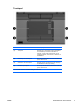 Onderdeel Beschrijving Uit: als de computer is aangesloten op een externe voedingsbron, gaat het lampje uit wanneer alle accu's in de computer volledig zijn opgeladen. Als de computer niet is aangesloten op een externe voedingsbron, blijft het lampje uit tot de accu in de computer bijna leeg is. (7) Schijflampjes ● Knipperend: er wordt geschreven naar of gelezen van de vaste schijf of een optische-schijfeenheid. ● Oranje: HP Mobile Data Protection heeft de interne vaste schijf tijdelijk geparkeerd.