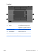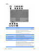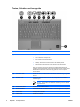 Komponente Beschreibung (8) Ermöglicht die Anmeldung bei Windows über einen Fingerabdruck anstatt über ein Kennwort. Fingerabdruck-Lesegerät *In dieser Tabelle sind die Werkseinstellungen beschrieben. Informationen zum Ändern der Werkseinstellungen finden Sie in den Benutzerhandbüchern im Hilfe- und Supportcenter. Tasten DEWW Komponente Beschreibung (1) esc-Taste Zeigt in Kombination mit der fn-Taste Systeminformationen an.