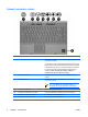 TouchPad Componente Descrizione (1) TouchPad* Consente di spostare il puntatore e di selezionare e attivare gli elementi sullo schermo. Può essere impostato per eseguire altre funzioni del mouse, come scorrere, selezionare e fare doppio clic. (2) Pulsante sinistro del TouchPad* Ha la stessa funzione del pulsante sinistro di un mouse esterno. (3) Area di scorrimento TouchPad Scorre in alto e in basso.