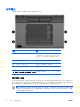 터치패드 다음은 컴퓨터 터치패드에 대한 그림과 표입니다. 부품 설명 (1) 터치패드* 포인터를 움직여서 화면에 표시된 항목을 선택하거 나 활성화합니다. 스크롤, 선택, 두 번 누르기 등의 다른 마우스 기능을 수행하도록 설정할 수 있습니 다. (2) 왼쪽 터치패드 버튼* 외장 마우스의 왼쪽 버튼과 같은 기능을 수행합니 다. (3) 터치패드 스크롤 영역* 위쪽 또는 아래쪽으로 스크롤합니다. (4) 오른쪽 터치패드 버튼* 외장 마우스의 오른쪽 버튼과 같은 기능을 수행합 니다. *이 표에서는 기본 설정에 대해 설명합니다. 포인팅 장치 기본 설정을 확인하거나 변경하려면 시 작 > 제어판 > 프린터 및 기타 하드웨어 > 마우스를 차례로 선택합니다. 터치패드 사용 포인터를 이동하려면 터치패드 표면에 손가락을 대고 포인터를 이동할 방향으로 밉니다. 터치패드 버 튼은 외장 마우스의 버튼과 같은 방법으로 사용하면 됩니다.