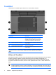TouchPad L'illustrazione e la tabella seguenti descrivono il TouchPad del computer. Componente Descrizione (1) TouchPad* Consente di spostare il puntatore e di selezionare e attivare gli elementi sullo schermo. Può essere impostato per eseguire altre funzioni del mouse, come scorrere, selezionare e fare doppio clic. (2) Pulsante sinistro del TouchPad* Ha la stessa funzione del pulsante sinistro di un mouse esterno. (3) Area di scorrimento del TouchPad* Scorre in alto e in basso.