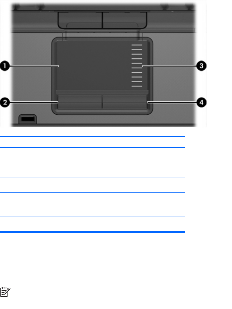 Na poniższej ilustracji oraz w tabeli przedstawiono płytkę dotykową komputera.