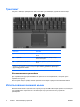 Сенсорная панель Рисунок и таблица, приведенные ниже, описывают указывающие устройства компьютера. Компонент Описание (1) Сенсорная панель* Перемещение указателя, выбор и запуск объектов на экране. Можно настроить для выполнения функций мыши, таких как прокрутка, выбор и двойной щелчок. (2) Левая кнопка сенсорной панели* Выполняет функцию левой кнопки внешней мыши. (3) Зона прокрутки сенсорной панели* Прокрутка вверх или вниз.