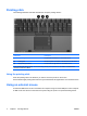 TouchPad The following illustration and table describe the computer TouchPad. Component Description (1) TouchPad* Moves the pointer and selects or activates items on the screen. Can be set to perform other mouse functions, such as scrolling, selecting, and double-clicking. (2) Left TouchPad* button Functions like the left button on an external mouse. (3) TouchPad scroll zone* Scrolls up or down. (4) Right TouchPad button* Functions like the right button on an external mouse.