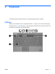 2 Keyboard The following sections provide information on the keyboard features of the notebook. Hotkeys Hotkeys are combinations of the fn key (2) and either the esc key (1) or one of the function keys (3). The icons on the f3, f4, and f8 through f11 keys represent the hotkey functions. Hotkey functions and procedures are discussed in the following sections.