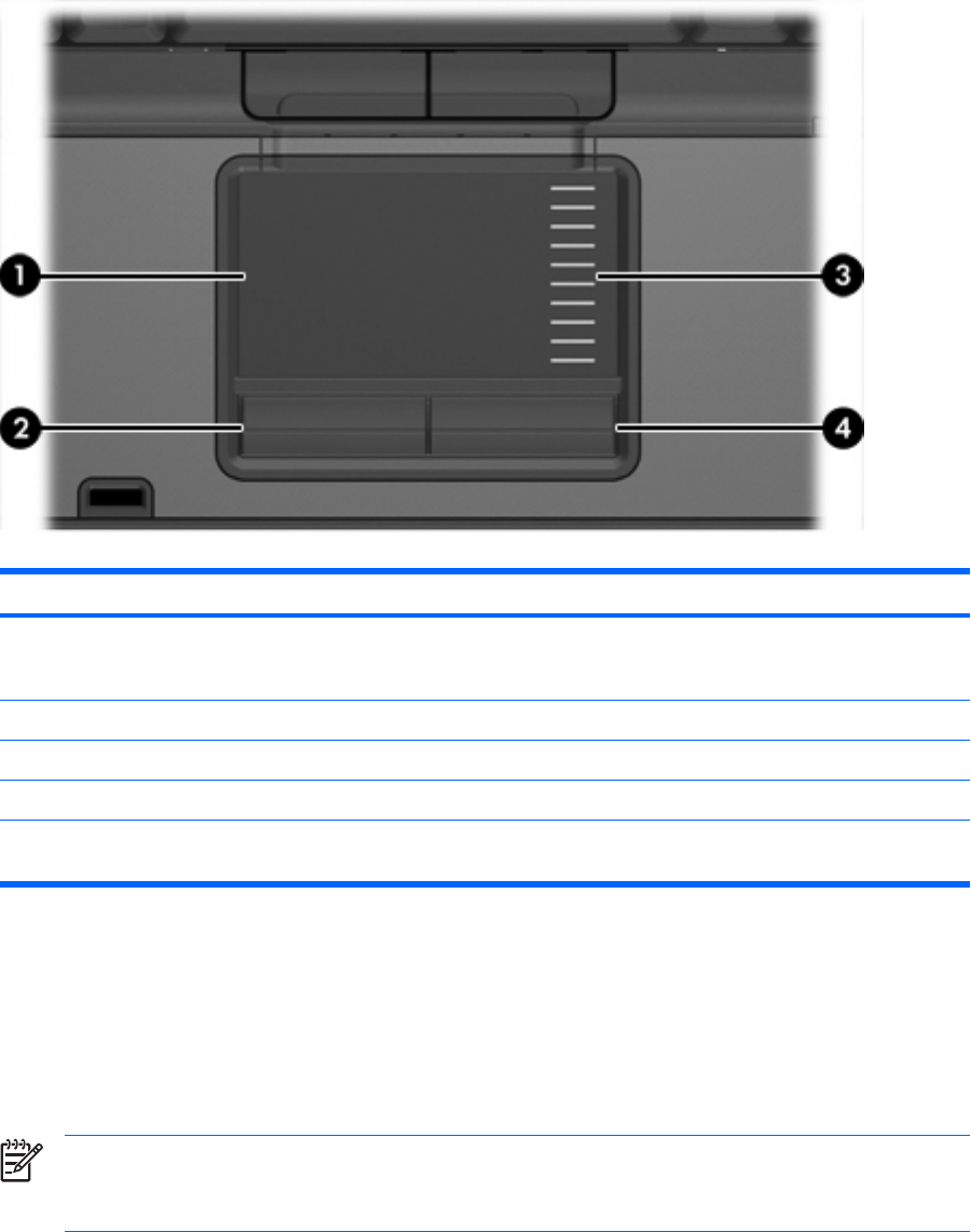 L'illustrazione e la tabella seguenti descrivono il TouchPad del computer.