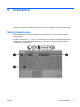 Płytka dotykowa TouchPad Na poniższej ilustracji oraz w tabeli przedstawiono płytkę dotykową TouchPad komputera. Element Opis (1) Płytka dotykowa TouchPad* Umożliwia przesuwanie wskaźnika, a także zaznaczanie oraz aktywowanie elementów na ekranie. Można ustawić ją tak, aby pełniła inne funkcje myszy, np. przewijanie, wybieranie czy klikanie dwukrotne. (2) Lewy przycisk płytki dotykowej* Pełni te same funkcje, co lewy przycisk myszy zewnętrznej.