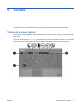 3 HP Quick Launch Buttons Utilice los Quick Launch Buttons de HP para abrir los programas utilizados más frecuentemente, también llamados aplicaciones, en el panel de control de Quick Launch Buttons de HP. (1) (2) ESWW Componente Descripción Botón Centro de información Inicia el Centro de información, que le permite abrir varias soluciones de software.