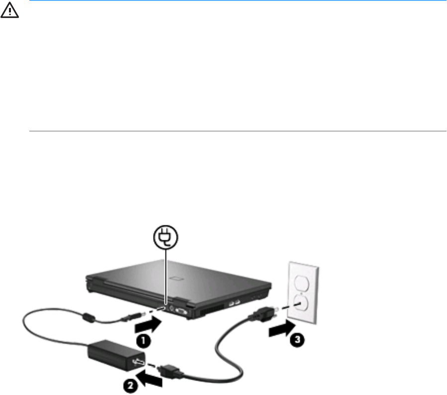 1. Připojte adaptér střídavého proudu do zásuvky napájení (1) v počítači.
