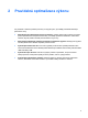 2 Pravidelná optimalizace výkonu Aby hardware i software počítače pracovaly na nejvyšší výkon, provádějte pravidelně následující jednoduché úlohy. CSWW ● Nainstalujte nebo aktualizujte antivirový software. Instalací antivirového softwaru ochráníte počítač před aktuálními bezpečnostními riziky. Provádějte pravidelné aktualizace antivirového softwaru, abyste počítač ochránili před ohrožením novými viry. ● Nainstalujte a aktualizujte software pro detekci a odstranění spywaru.