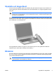 Styrplatta och tangentbord Fett och smuts på styrplattan (bara vissa modeller) kan göra att pekaren hoppar runt på skärmen. Du unviker detta genom att ofta tvätta händerna när du använder datorn och rengöra styrplattan med en fuktig duk. VARNING! Minska risken för elstötar och skada på de interna komponenterna genom att inte försöka göra rent tangentbordet med ett dammsugarmunstycke. Avfall från dammsugaren kan då hamna på tangentbordet.