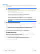 Batteri VARNING! Undvik risken för säkerhetsproblem genom att bara använda det batteri som medföljer datorn, ett reservbatteri från HP eller ett kompatibelt batteri som har köpts som tillbehör från HP. VIKTIGT Undvik skada på batteriet genom att inte utsätta det för hög temperatur under en längre tid. Om datorn inte ska användas på mer än två veckor och även vara bortkopplad från extern ström under den tiden, tar du ut batteriet och förvarar det separat.