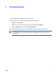 1 Komponenter I det här kapitlet beskrivs maskinvarufunktionerna i datorn. Gör så här om du vill se en lista med installerad maskinvara på datorn: 1. Välj Start > Den här datorn. 2. I vänster ruta av fönstret Systemuppgifter väljer du Visa systeminformation. 3. Välj fliken Maskinvara och välj sedan > Enhetshanteraren. Du kan också lägga till maskinvara eller ändra enhetskonfigurationer med Enhetshanteraren.