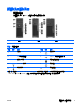 前面板及後面板元件 前面板元件 下圖僅供參考。 您 HP 工作站的外觀可能會有所不同。 xw4000 系列 xw6000 系列 xw8000/xw9000 系列 表格 2-1 前面板組件 * 項目 * ** 符號 說明 項目 符號 說明 1 光碟機 6 耳機接頭 2 5.25 英吋磁碟插槽 7 USB 2.
