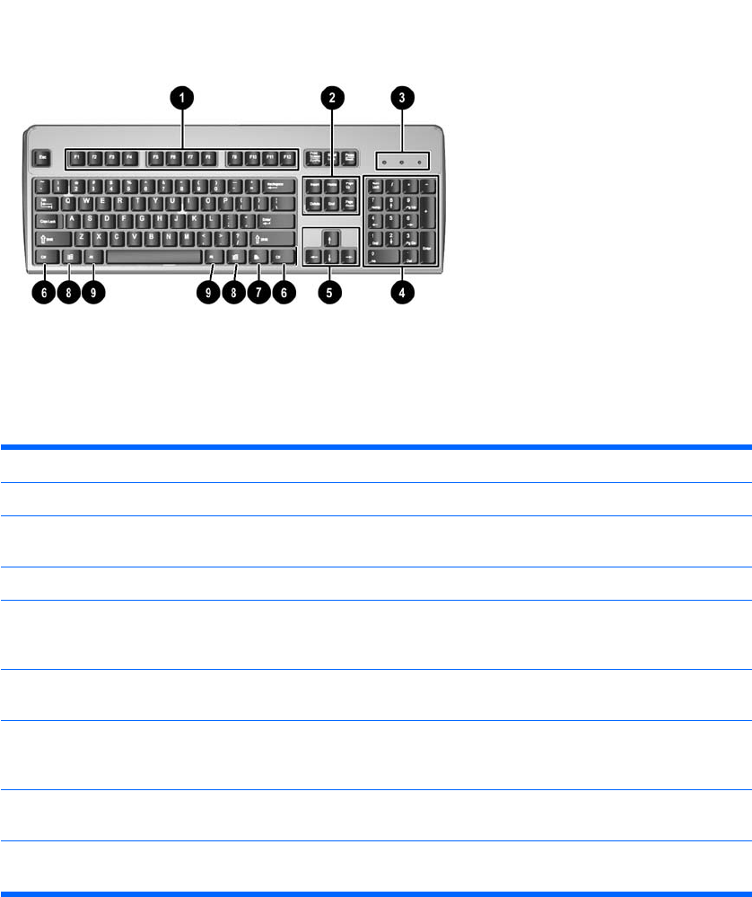 1 Teclas de função Executam funções especiais, de acordo com a aplicação de software utilizada.