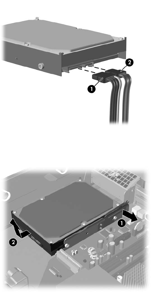 10. Desligue o cabo de alimentação (1) e o cabo de dados (2) da parte posterior da unidade de disco
