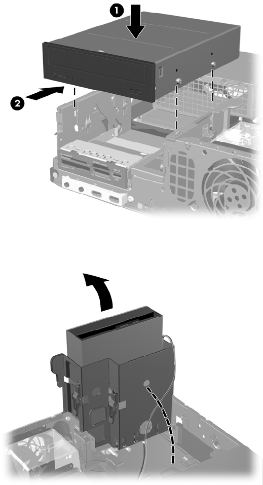 continuación, deslice la unidad hacia la parte trasera del ordenador (2) hasta que quede fijada en