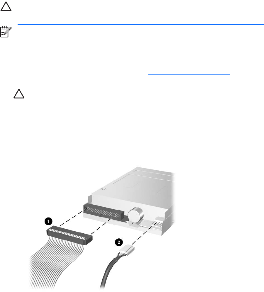 a. Si va a extraer una unidad de disquete, desconecte el cable de datos (1) y el cable de