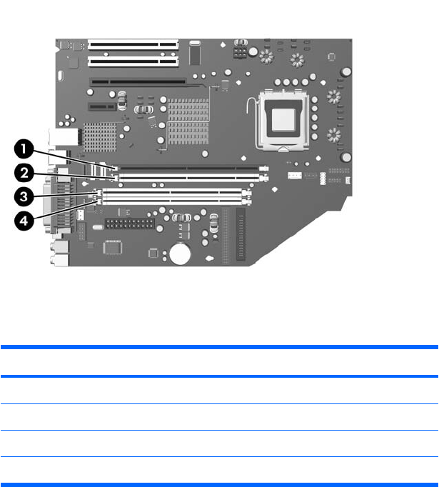 На системній платі є чотири розніми DIMM, по два розніми на кожен канал. Розніми марковано