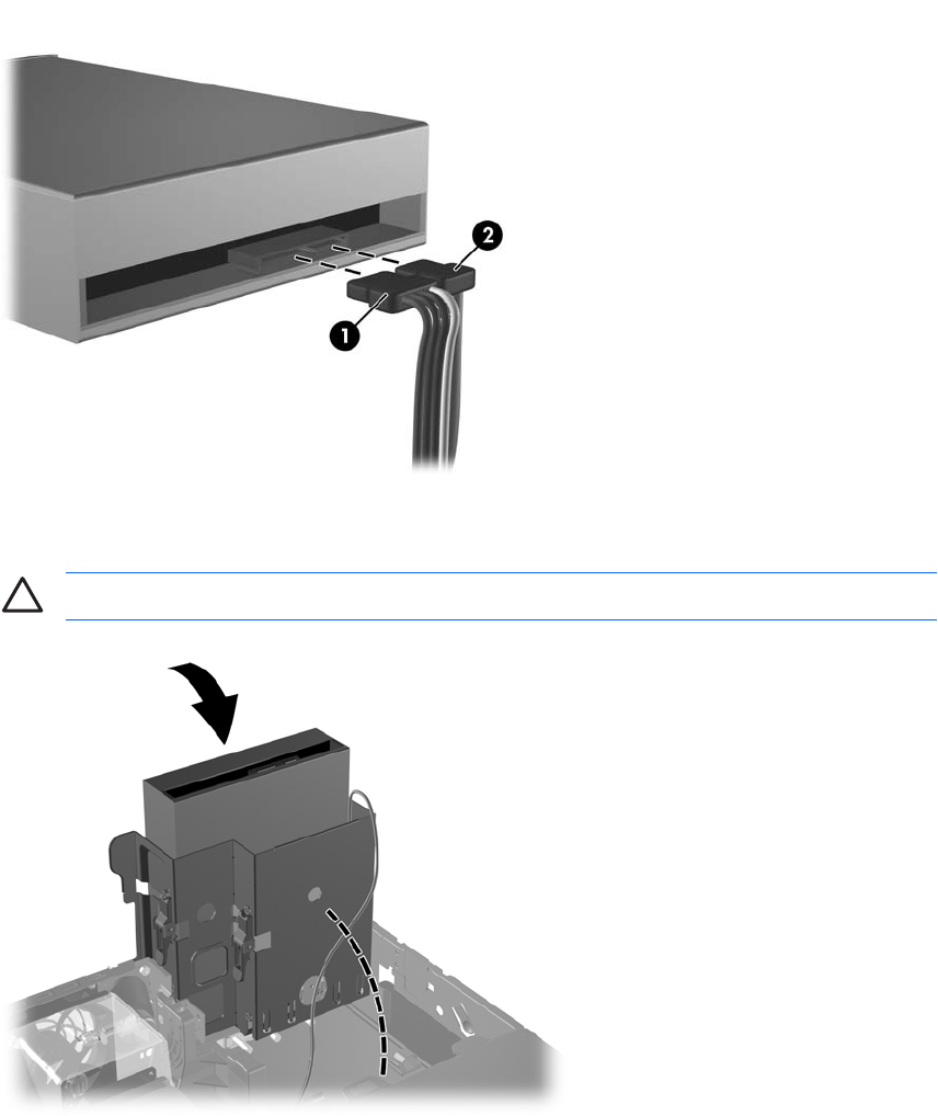 8. Відключіть кабель живлення (1) і кабель даних (2) від задньої панелі оптичного привода.