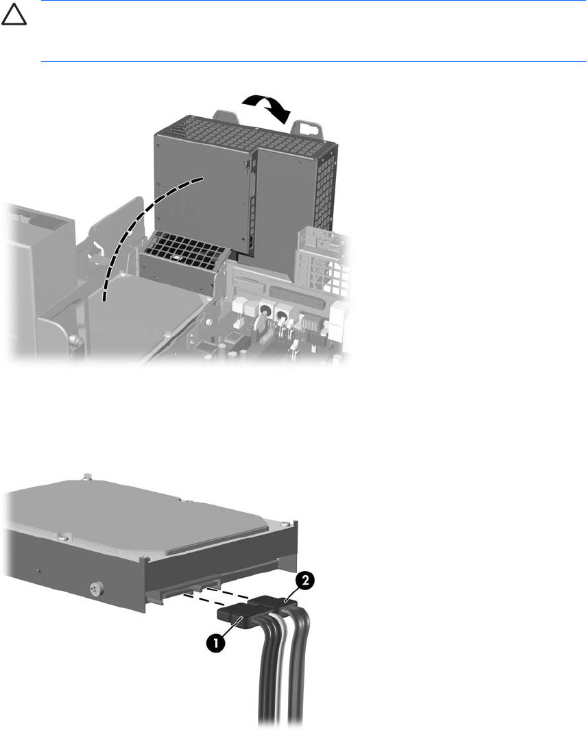 приводу, то при підніманні блоку живлення обережно спрямуйте всі кабелі навколо