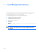 1 Client Management Solutions Client Management Solutions biedt op standaarden gebaseerde oplossingen voor het beheren van clientcomputers (gebruikerscomputers), variërend van desktopcomputers en werkstations tot notebookcomputers en Tablet PC's, in een netwerkomgeving. De belangrijkste mogelijkheden en functies van Client Management zijn ● Initiële deployment van software (van image). ● Installatie van systeemsoftware op afstand. ● Beheer en updates van software. ● ROM-updates.
