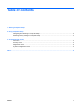 Table of contents 1 Starting Computer Setup 2 Using Computer Setup Navigating and selecting in Computer Setup ....................................................................................... 2 Restoring factory settings in Computer Setup ...................................................................................... 3 3 Computer Setup menus File menu ..............................................................................................................................................