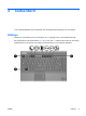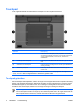 Touchpad In de volgende illustratie en tabel wordt het touchpad voor de computer beschreven. Onderdeel Beschrijving (1) Touchpad* Hiermee kunt u de aanwijzer (cursor) verplaatsen en onderdelen op het scherm selecteren of activeren. U kunt andere muisfuncties voor dit onderdeel instellen, zoals schuiven, selecteren en dubbelklikken. (2) Linkerknop van het touchpad* Deze knop heeft dezelfde functie als de linkerknop op een externe muis.