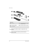 Index computer viruses 3–4 connect the computer to external power 1–5 connecting to a computer network 2–7 connectors, docking A–8 cord power, connecting 1–5 Customer Care 3–7 D data, safeguarding C–1 devices, external troubleshooting 3–5 Digital Media Slot, identifying A–5 display release latch, identifying A–5 display switch A–9 display, switching image 3–3 docking connector, identifying A–8 drive light, identifying A–5 drive, optical A–6 E embedded numeric keypad, identifying A–3 environmental specifi