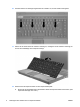 Index S Speicher Austauschen von Speichermodulen 2, 5 Speichermodul Aktualisieren des primären Speichermoduls 5 Einsetzen 7 Entfernen 2, 6 Erneutes Anbringen 2, 5 Speichermodulfachabdeckung Entfernen 2 Erneutes Anbringen 4 T Tastaturschrauben Entfernen 5 Erneutes Anbringen DEWW 9 Index 11