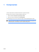 1 Komponenten In diesem Kapitel werden die Hardwaremerkmale des Computers beschrieben. So zeigen Sie eine Liste der im Computer installierten Hardware an: 1. Wählen Sie Start > Arbeitsplatz > Systemeigenschaften. 2. Klicken Sie im linken Fensterbereich auf Geräte-Manager. Im Geräte-Manager können Sie auch Hardware hinzufügen oder die Gerätekonfiguration ändern. Hinweis Die zum Computer gehörenden Komponenten können sich je nach Land/Region und Modell unterscheiden.