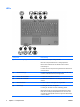 Komponente Beschreibung (8) Ermöglicht die Anmeldung bei Windows per Fingerabdruck statt mit einem Kennwort. Fingerabdruck-Lesegerät *In dieser Tabelle sind die Werkseinstellungen beschrieben. Informationen zum Ändern der Werkseinstellungen finden Sie in den Benutzerhandbüchern unter Hilfe und Support. Tasten im Tastenfeld DEWW Komponente Beschreibung (1) esc-Taste Diese Taste zeigt in Verbindung mit der fn-Taste Systeminformationen an.