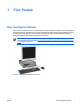 Komponen Pembaca Kartu Media Pembaca kartu media adalah perangkat tambahan yang hanya tersedia pada model tertentu. Lihat ilustrasi dan tabel berikut ini untuk mengenali komponen pembaca kartu media. Tabel 1-2 Komponen Pembaca Kartu Media 1 2 3 IDWW SmartMedia/xD ● 3.
