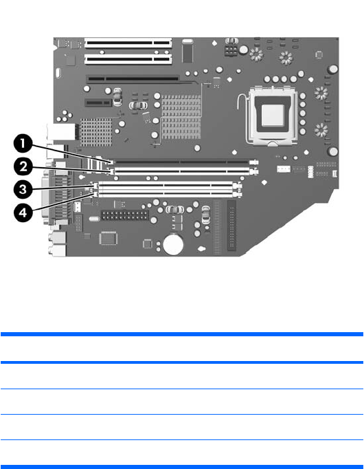 Existem quatro sockets de DIMMs na placa de sistema, com dois sockets por canal. Os sockets estão