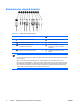 Клавиатура Таблица 1-4 Компоненты клавиатуры 1 RUWW 1 Функциональные клавиши Выполняют те или иные функции в зависимости от используемого программного приложения. 2 Клавиши правки Представляют собой группу следующих клавиш: INSERT, HOME, PAGE UP, DELETE, END и PAGE DOWN. 3 Индикаторы состояния Отображают состояние компьютера и параметры клавиатуры (NUM LOCK, CAPS LOCK и SCROLL LOCK). 4 Цифровые клавиши Выполняют функции, аналогичные панели калькулятора.