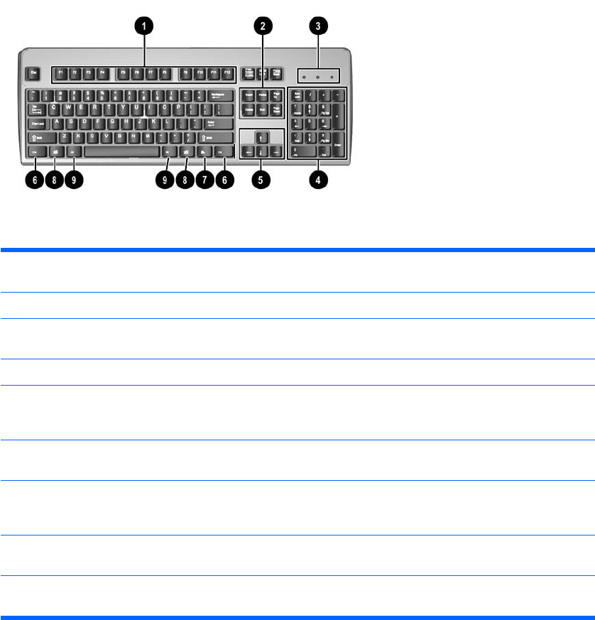 1 Teclas de función Realizan funciones especiales según la aplicación de software que se esté