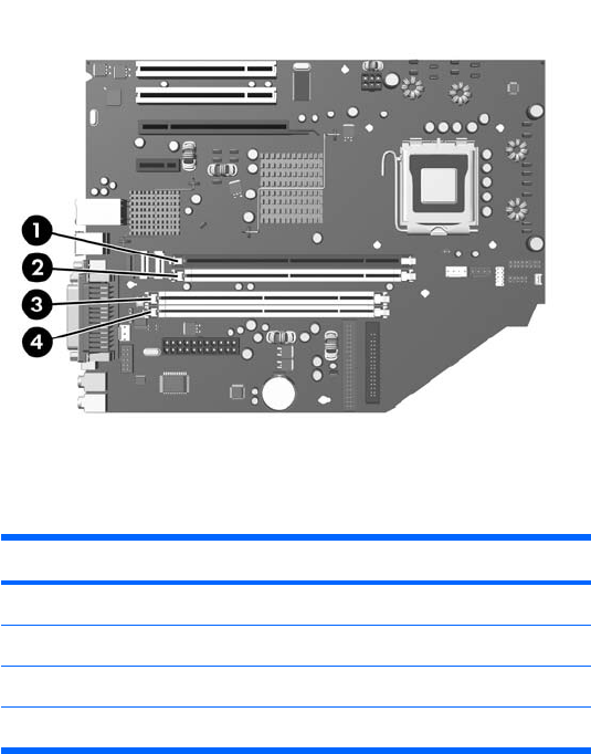 มีซ็อกเก็ต DIMM ทั้งหมดสี่ซ็อกเก็ตบนเมนบอรด สองซ็อกเก็ตตอหนึ่งแชนเนล ซ็อกเก็ตดังกลาวจะระบุวาเปน XMM1,