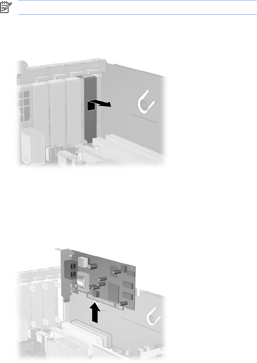 a. หากคุณตองการจะติดตั้งการดเอ็กซแพนชันลงในซ็อกเก็ตที่วางอยู ใหถอดฝาปดสล็อตเอ็กซแพนชันที่ดานหลัง