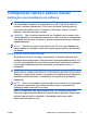 Conteúdo Configuração rápida e passos iniciais Instalação e personalização do software ........................................................ 1 Instalação do sistema operacional ............................................... 1 Download de atualizações do Microsoft Windows ....................... 2 Instalação ou atualização de drivers de dispositivos ................... 2 Personalização da exibição do monitor ........................................ 3 Proteção do software .................................
