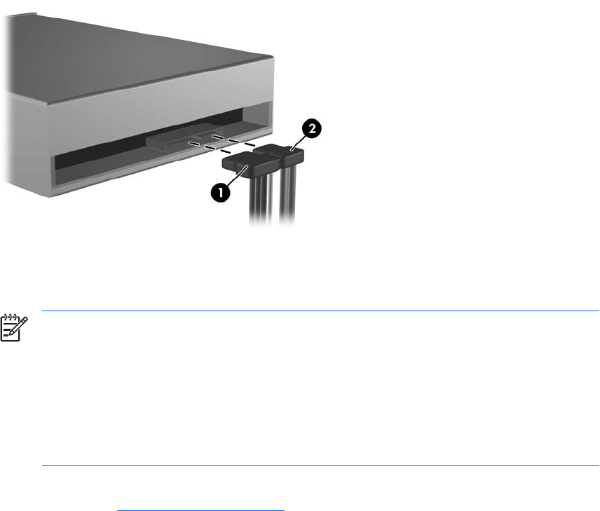 Opomba Če nameščate optični pogon SATA, prvi optični pogon priključite na beli